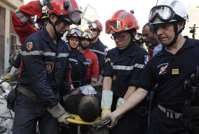 צוותי חילוץ מיוון וצרפת, שכבר היו בדרכם לשדה התעופה, הוזעקו לזירה והחלו מיד בעבודה. אפוסטולוס דדס, מהצוות היווני, סיפר בהתרגשות: "שאלתי אותו אם הוא בסדר, והוא דפק על הבטון. זה נס". המחלצים זחלו למחילה והרימו לאט-לאט את הבטון, קורות העץ ומוטות הברזל. בסופו של דבר הוציאו את הלכוד מההריסות.