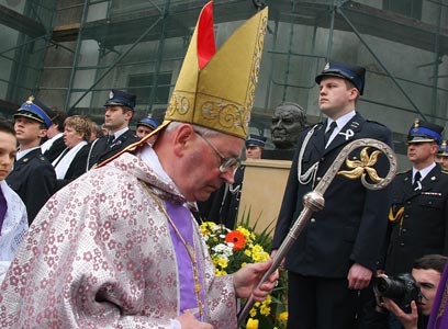 ערב יום השואה הבינ"ל ועל-רקע התלקחות הוויכוח בין היהדות לנצרות בשאלת הקדשתו של פיוס ה-12, מותח הבישוף טאדוש פיירונק ביקורת לא פשוטה על אופן הנצחת השואה. "זה לא נכון מבחינה היסטורית לומר שבמחנות מתו רק יהודים. כיום מתעלמים לעתים קרובות מהאמת. היהודים נהנים מהסברה טובה"