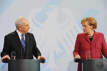מרקל ופרס. מודאגים מאיראן (צילום: עמוס בן גרשום לע"מ)