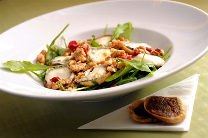 תאנים מיובשות עם גבינת סנט מור וסלט אורוגלה