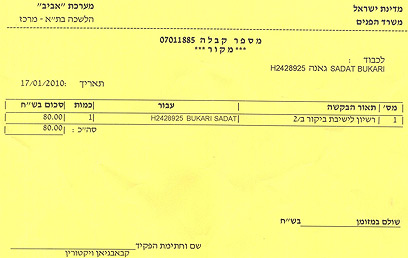 כפי שניתן לראות למעלה משמאל, הוויזה הונפקה בת"א