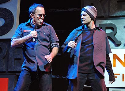 מנחה הטקס הייד פירס עם מנהל הפסטיבל ג'ון קופר