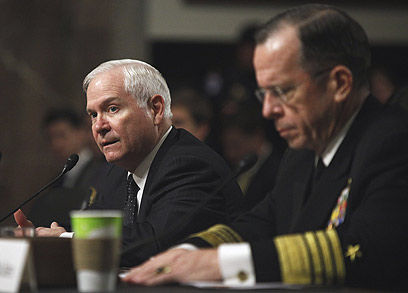 גייטס (משמאל) והאדמירל מאלן, הערב בסנאט (צילום: AP)