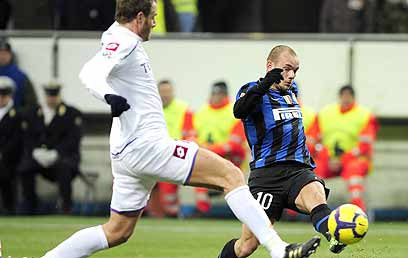 מוליכת הליגה האיטלקית, אינטר, ניצחה הערב (ד') 0:1 את פיורנטינה בסן סירו במשחק הראשון בחצי גמר הגביע האיטלקי.
