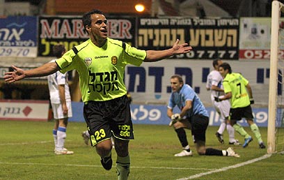 גול לנתניה! דקה 29: מאמציו של קאבארל הניבו תוצאות לאחר שקיבל כדור מעומרי בן הרוש בדרכו לרחבה ומקרוב הכניע את דרגוסלאב יבריץ' - 1:1.