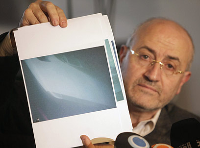 שר התחבורה הלבנוני מציג צילום של גוף המטוס (צילום: רויטרס)