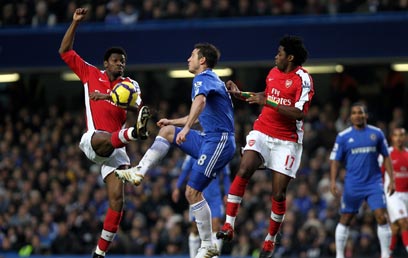 הדרבי הלונדוני בין צ'לסי לארסנל הסתיים עם ניצחון 0:2 של הבלוז, שחזרו למקום הראשון על חשבון מנצ'סטר יונייטד. דידייה דרוגבה כבש צמד (8 ו-23) והעלה את מאזנו ל-17 שערים העונה