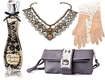 שרשרת של מיכל נגרין, 1,100 שקל; תיק של ליליגרייס, 139 שקל; כפפות של קרן וולף, 450 שקל; בושם של כריסטינה אגילרה, 150 שקל (צילומים: אודי דגן, אלכס קוצ'רנקו, מייקל קמרון, יואב רינשטיין)