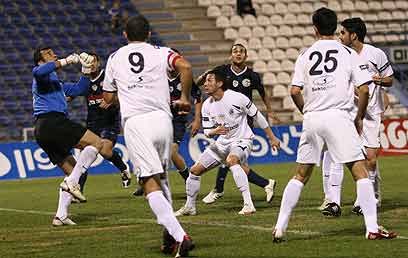 דראגן סטויקיץ' בין שחקני ההגנה האשדודים (אורן אהרוני)