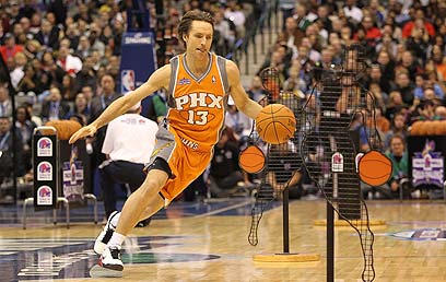 סטיב נאש מלהטט בדרך לזכייה בתחרות הכישורים (צילום: AFP)