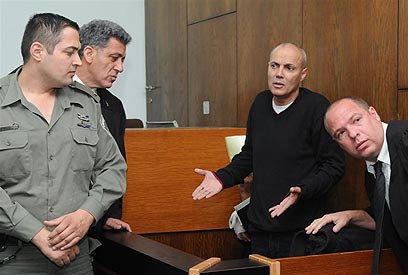 הררי (שני מימין), היום בבית המשפט. "אני חף מפשע" (צילום: ירון ברנר)