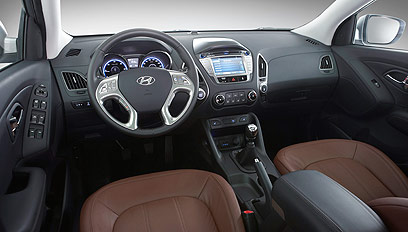 למודי ניסיון העבר, בו כבר נתקלנו במוצרי קוריאה מרשימים מבחוץ אך בינוניים מאד בפנים, הופתענו לגלות כי ה-ix35 דווקא אינו מאכזב. לצד פריטי עיצוב נאים כמו פתחי בקרת האקלים המפוצלת, הממוקמים על זוג בומרנגים שאחד מהם מקיף את לוח המחוונים הזוהר והשני את תא הכפפות, או ההגה הנאה, איכות החומר מעוררת בטחון שבעבר בפירוש לא היה מנת חלקן של מכוניות קוריאניות. בנוסף לכך מצאנו אופציות - כתוספת בתשלום – שאף הן אינן שכיחות ביונדאי: מתג התנעה קצת מיותר, חיישני גשם מבורכים, חימום למושבים ומראות צד מתקפלות בכיבוי המכונית.