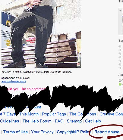 אתר אלבומי התמונות גם מאפשר לדווח על תמונות בעייתיות שאתם מוצאים בו. בתחתית עמוד עם תמונה תמצאו בקטן את הקישור Abuse. אחר כך יובילו אתכם לעמוד בו צריך לנמק בקצרה מדוע אתם מבקשים כי התמונה תוסר מהאתר.