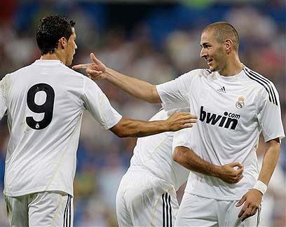 "מחכה לברך את החברים לשלום". בנזמה עם כריסטיאנו רונאלדו (AP)