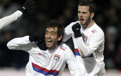 ססאר דלגאדו ומיראלם פיאניץ' בניצחון ליון בשבת על ראן (צילום: רויטרס)