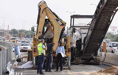 שוטרים במקום התאונה (צילום: עידו ארז)