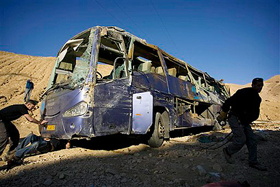 תאונת האוטובוס ליד אילת: 24 הרוגים, 27 פצועים (צילום: AP)