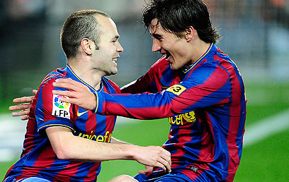 קרקיץ' ואינייסטה חוגגים את הניצחון על ראסינג סנטאנדר (AFP)