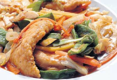 חזה עוף במרינדה אסייתית וירקות גינה (צילום: שלום בר-טל)