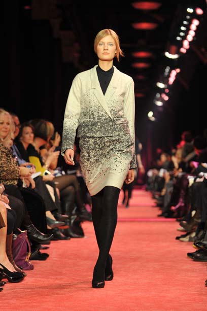 לצד הקולקציות הללו, שמקורן בשמות מוכרים, בלטה הקולקציה של כריסטיאן קוטה. בשבוע אופנה נטול סיכונים, קוטה היה בין היחידים שהצליח להעמיד לוק עצמאי. בעודו משלב בין העתידני לקלאסי, תוך שימוש בהדפסים נפלאים ובעבודת טלאים מדויקת, קוטה היה בהחלט ההפתעה של השבוע. הטלאים, בשונה מעבודת הקווילט המוכרת, הונחו אחד על השני, ויצרו באמצעות הפוזיציה הזו נפח ועומק בפריט פשוט יחסית כמו חצאית. לכל הדגמים צוותו צמידים מאסיביים שטיילו עד למרפק של הדוגמניות, ויצרו ניגוד מעניין מול השיער הנפוח האסוף כלפיי מעלה, שהעלה במחשבה את שנות ה-50' השמרניות.