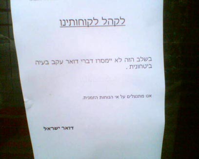 ההודעה בסניף דואר בת"א, היום (צילום: רועי מנדל)
