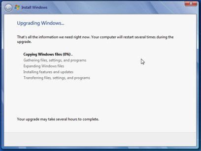 תהליך ההתקנה יתחיל. עם סיומו, המחשב שלכם יאתחל את עצמו (יכול להיות שיידרש יותר מאתחול אחד) והוא אמור לעלות עם מערכת Windows 7 המשודרגת, עם כל הקבצים והתוכנות המותקנות שלכם במקומם.