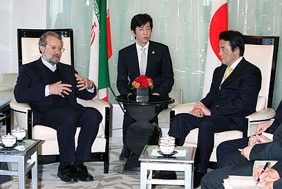 שר החוץ אוקדה בפגישה עם לריג'אני, היום (צילום: AP)