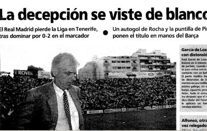הסרבי (מאמן נבחרת ארצו כיום) נזרק מריאל בצורה מכוערת (הנשיא רמון מנדוסה לא אהב את הסגנון בו נקט והביא את בינהאקר כיועץ, על מנת לגרום לו ללכת), למרות שהקבוצה הוליכה בינואר בהפרש של שבע נקודות. חלק מאוהדי טנריפה הצוהלים צעקו 'בארסה, בארסה' וכמה מאוהדי ריאל התעמתו עם כוחות המשטרה לאחר שריקת הסיום.