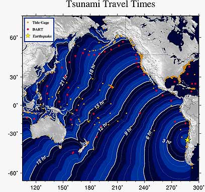 כחצי יממה אחרי רעש האדמה האדיר שפגע בצ'ילה, העיניים נשואות אל גלי הצונאמי שמתקדמים צפונה ומערבה ומאיימים לפגוע בשעות הקרובות באוקייניה, הוואי ומחר גם בחופים המערביים של ארה"ב, אוסטרליה, ודרום-מזרח אסיה. גורמים רשמיים בצ'ילה: מניין ההרוגים עומד על 147 אך לא יכפיל עצמו. אובמה: צייתו לאזהרות הצונאמי