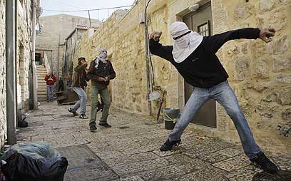 מיידים אבנים, היום בעיר העתיקה בירושלים (צילום: AP)