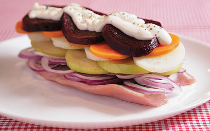 דג מלוח עטוף בתפוח, ירקות ומיונז