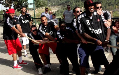 שחקני י-ם, מושכים בחבל (צילום: האתר הרשמי של הפועל ירושלים)