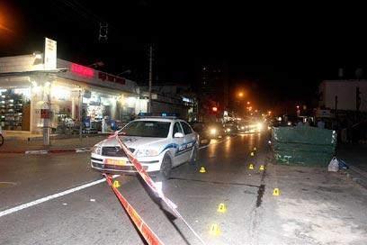 האיש נורה ברחוב הומה אדם, ליד סופרמרקט (צילום: עופר עמרם)