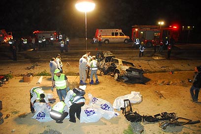 גופות בני המשפחה ליד הרכב שעלה באש (צילום: הרצל יוסף)