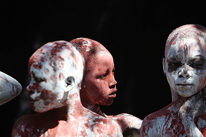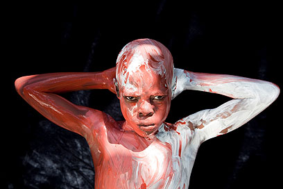 דקות ארוכות אני בוהה בו, מרוח באדום, שחור ולבן, סיגריה בפיו, פנים רגועות ועשן שמיתמר לו לאט לאט בלי לתפוס כיוון מיוחד. ממש כמו אותו אוויר שם בפורט או פרינס. האוויר שעמד ולא נשב לשום מקום ולא נפנף את הריח הכבד, הנורא ההוא, של רבע מליון גופות, של המוות ששאפנו עמוק עמוק לתוך ריאות.