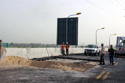 קטע הכביש ששקע (צילום: דנה קופל)