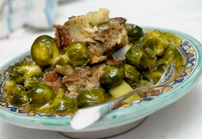 תבשיל כתף טלה עם כרוב ניצנים וכרשה