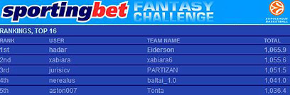 יש כבוד. אהרל'ה ויסברג בראש הפנטזיסטים בטופ 16 (מתוך אתר היורוליג)