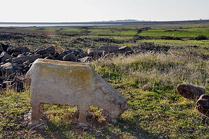 פסל אבן של פרה בשטח של מאגר בני ישראל (צילומים: רונית סבירסקי)