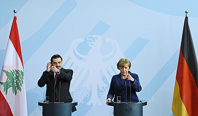 מסר תקיף בברלין. מרקל ואל-חרירי (צילום: AFP)