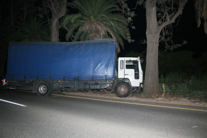 המשאית שבה התנגש הגבר (צילום: שלומי גבאי, חדרה)