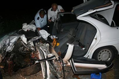 שברי המכונית שבה נהג הגבר, אחרי ההתנגשות (צילום: שלומי גבאי, חדרה)
