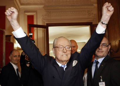 מנהיג הימין הקיצוני שהוספד על ידי מבקריו זכה בהישג מרשים בסיבוב הראשון של הבחירות המקומיות וקבע כי הוא "שב לקדמת הבמה של הפוליטיקה". השמרנים בראשות הנשיא סרקוזי נערכים לסיבוב השני בתקווה שיעצרו את הניצחון הצפוי של גוש השמאל