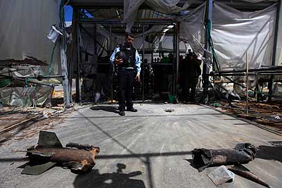 שרידי הרקטה ושברי החממות (צילום: צפריר אביוב)