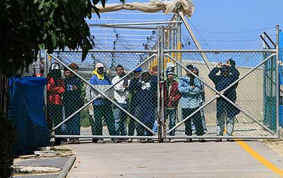 פועלים במושב, היום. נאספו בנסיון להרגיע אותם (צילום: צפריר אביוב)