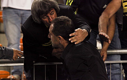 יישאר המאמן הראשי. דוד אמסלם והאוהד נומה (צילום: נועם מוסקוביץ')