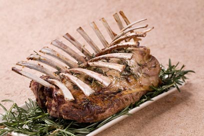 2 נתחים שלמים בני 8 צלעות כל אחד (לבקש מהקצב לחשוף את העצם שמקשרת בין הצלעות, לנקות את הנתחים משומן וליצור הפרדה בין העצמות)