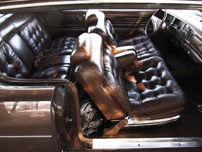 דלת הגראז' נפתחה כלפי מעלה, חושפת את הפרונט של הניו יורקר, ואני הרגשתי שוב כמו ילד שבוהה בשברולט קאפריס קלאסיק - מכונית שלא משנה מאיפה חווית אותה, חשת הערצה ויראה. אני זוכר את עצמי עומד משותק מול הגודל של הקאפריס הלבנה שקנה בן דוד שלי, אבל שתבינו: היא היתה בסך הכל מה שקוראים בארצות הברית מכונית פול-סייז. מין סקודה אמריקאית, דגם בסיסי שמשמש את המשטרה ואת נהגי המוניות הצהובות. הקרייזלר ניו יורקר מצידה היא מכונית קינג-סייז, וזאת של איתן היא גם הגירסה המפוארת Brougham (פירוש מילולי: כרכרה. פירוש מעשי: לא דפקנו חשבון לכלום כשעיצבנו ובנינו את הדבר המשוגע הזה).