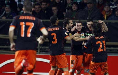 ולנסיה חוגגת במשחק הענק בברמן (צילום: AFP)