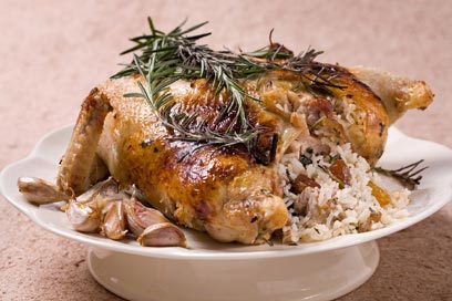 עוף שלם ממולא באורז, כבדי עוף ותבלינים יהיה מנה עיקרית נהדרת לליל סדר של אוכלי קטניות. גם מנה עיקרית וגם תוספת במאכל אחד
